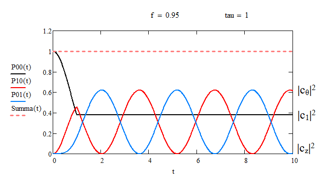 $P10=|c_{\theta}|^2$ - вероятность состояния $|1,0\rangle,$ т.е. атом возбуждён, но фотон ещё не рождён (или уже поглощён атомом, если был рождён атомом раньше);