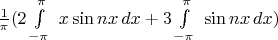 Так как константы ортогональны синусам и косинусам от $nx$ на интервале $(-\pi, \pi)$ то рассмотрим лишь $\displaystyle 2\int_{-\pi}^{\pi}x \sin nx \ dx $: